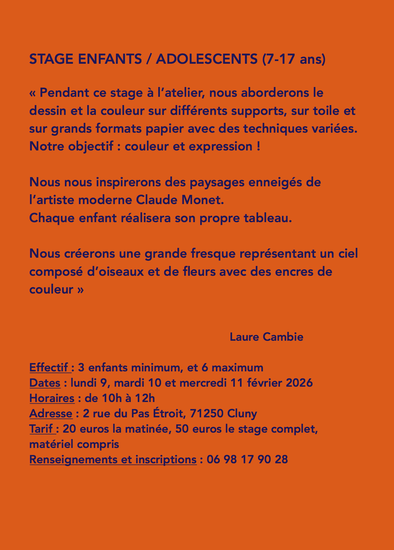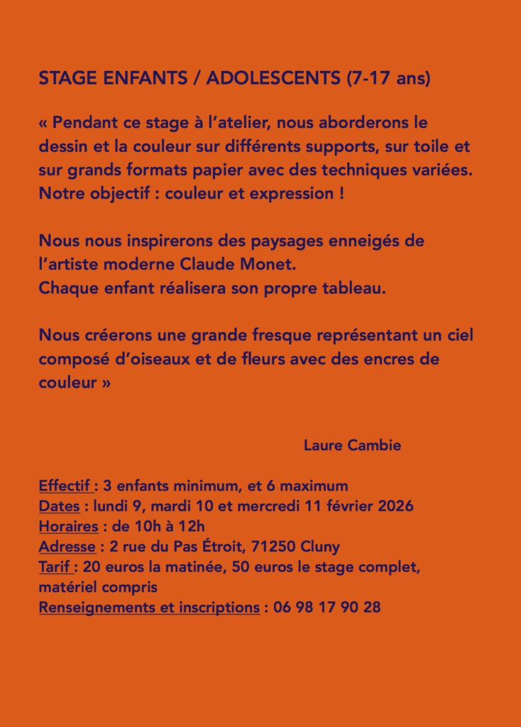 Possibilité d’ouvrir d’autres stages pendant les petites vacances pour un minimum de 3 inscrits.